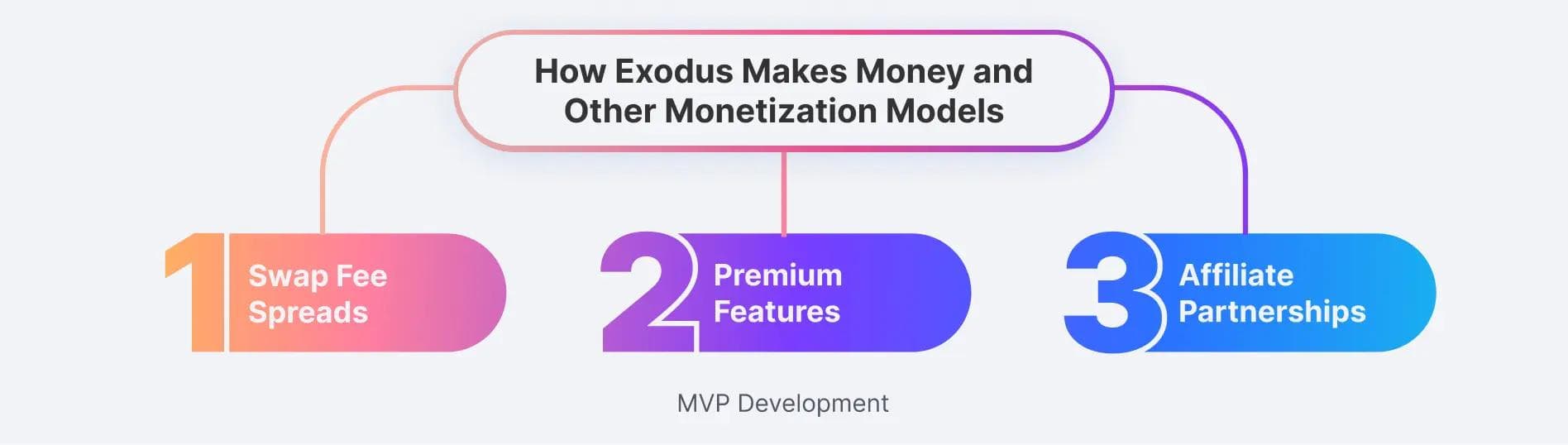 Although Exodus currently offers basic wallet features for free, numerous competitors generate revenue via optional enhancements. Your MVP might also provide premium options that include: