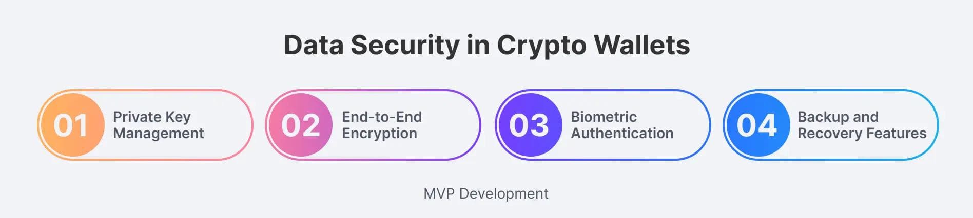 Security is not a choice – it’s an essential principle. From the very first day, your product needs to safeguard user funds, personal information, and access credentials. Robust security for cryptocurrency wallets begins with:
