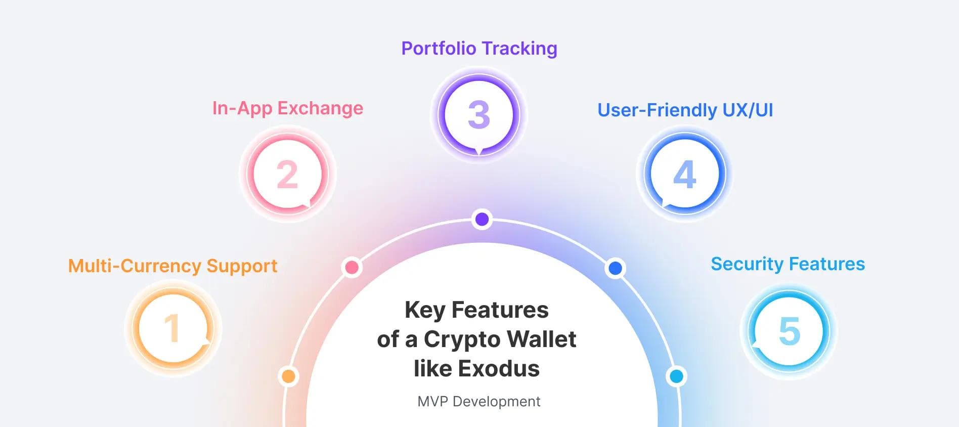 Startups looking to create a digital wallet app similar to Exodus should concentrate on: