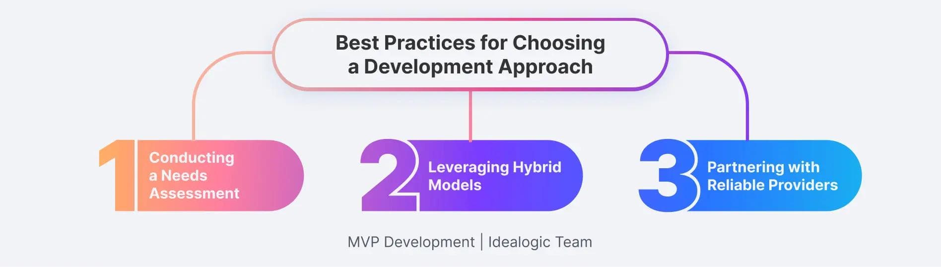Choosing the appropriate development method for your MVP necessitates strategic planning and a thorough assessment of your startup’s requirements, assets, and objectives. By adhering to established best practices, startups can confirm that their decisions support long-term goals and enhance efficiency. Choosing the right development team is indeed a crucial step.